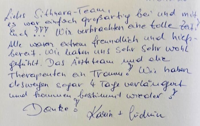 Bei Fragen steht Ihnen Kathrin Lochmann (aus Deutschland) unter: kontakt@sithnara.com zur Verfügung. Wir würden uns freuen, Sie individuell beraten zu dürfen.